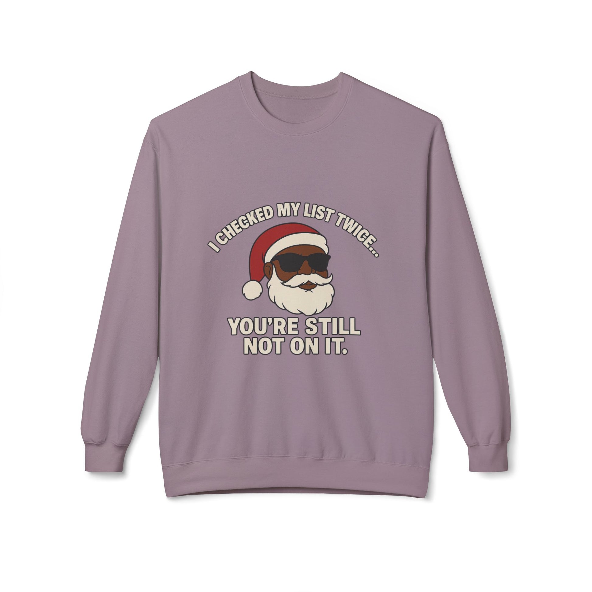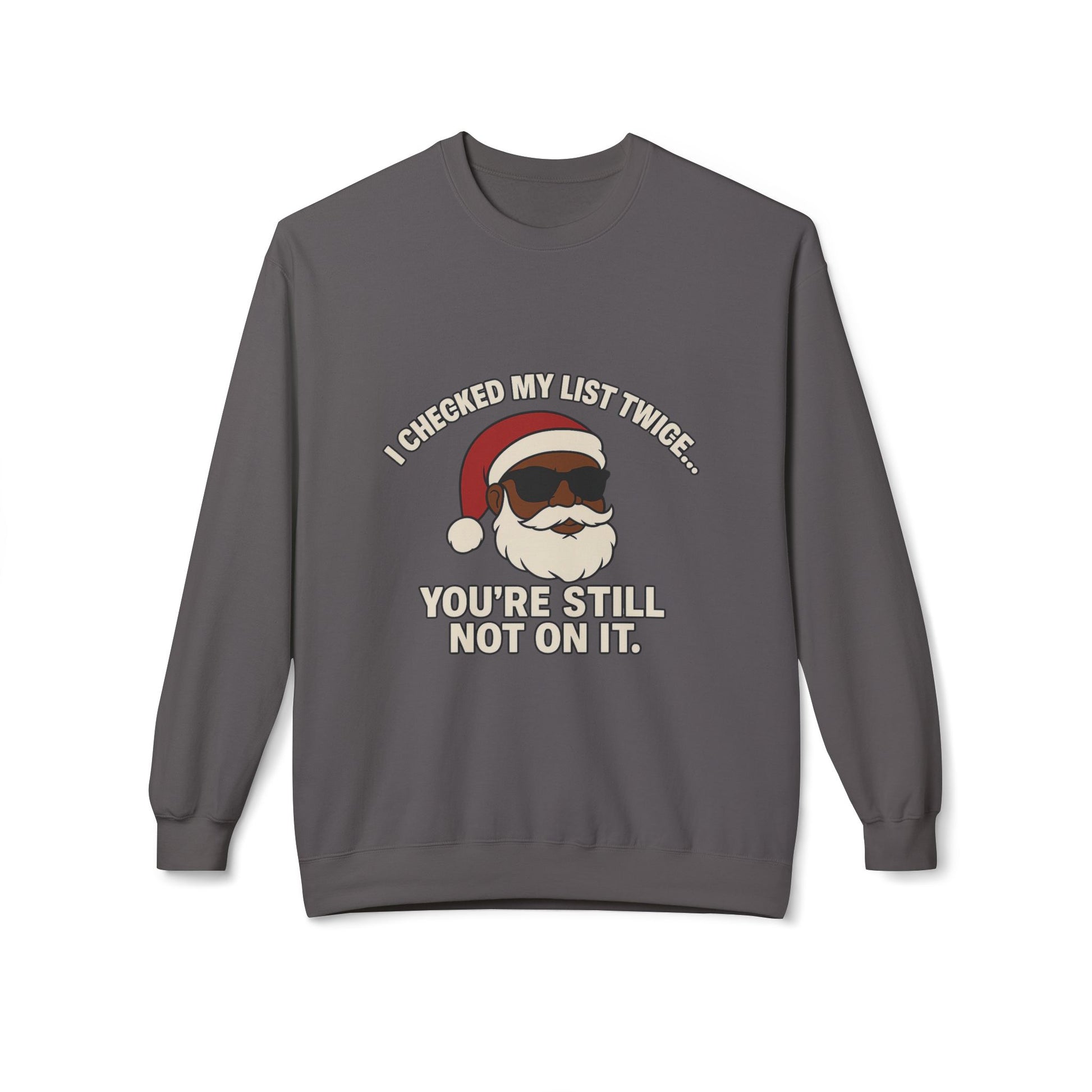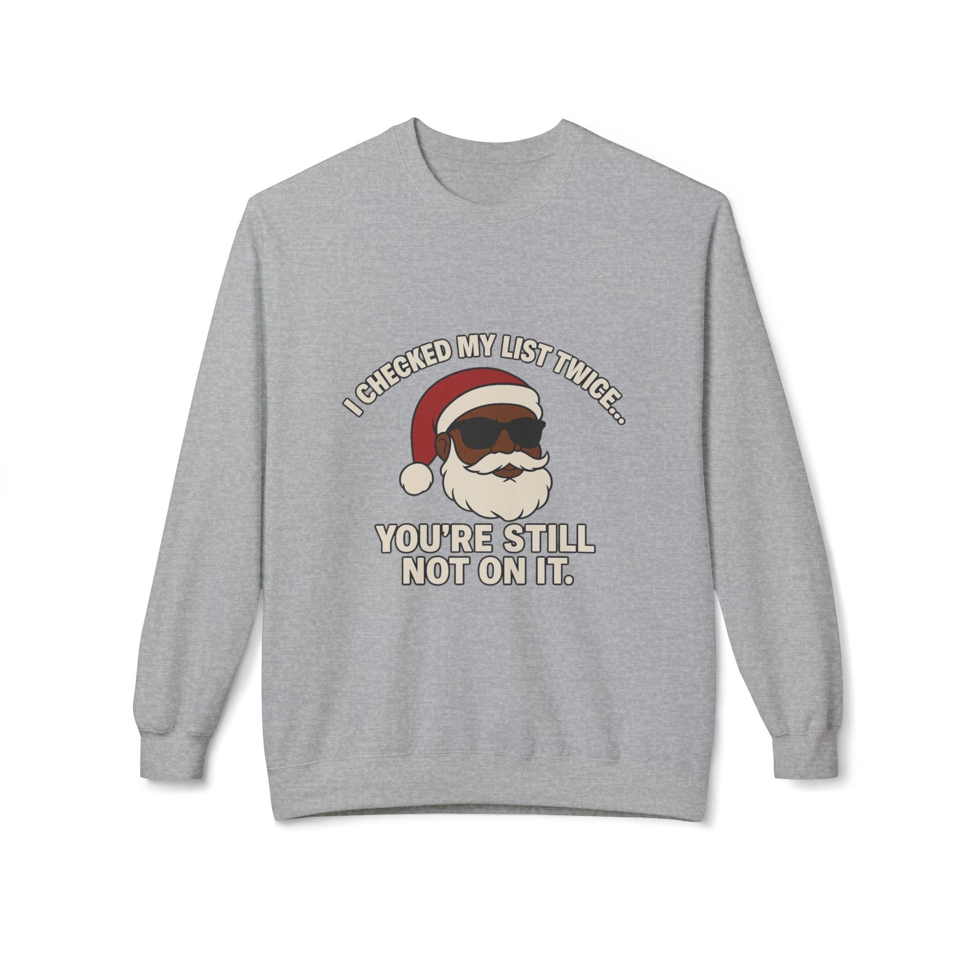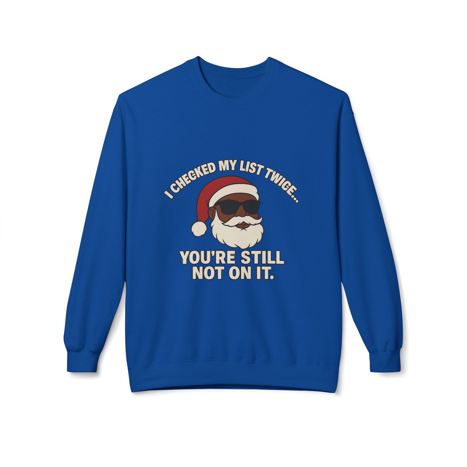 Funny Santa Crewneck Sweatshirt — "I Checked My List Twice... You're Still Not On It" Holiday Sweater
